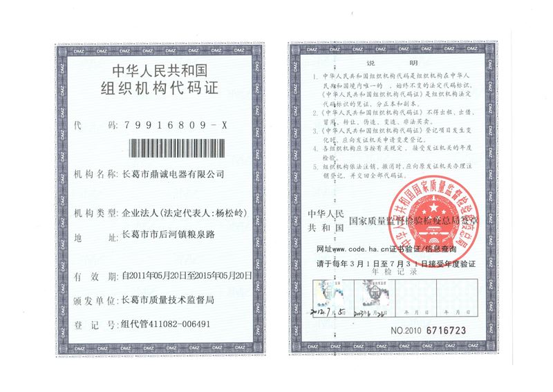 长葛市鼎诚电器有限公司-组织机构代码证