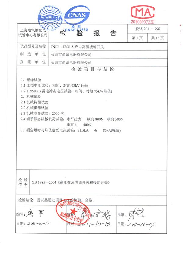 JN口试验报告检验项目页