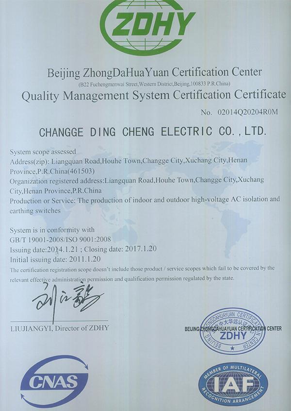 鼎诚电器质量认证体系正