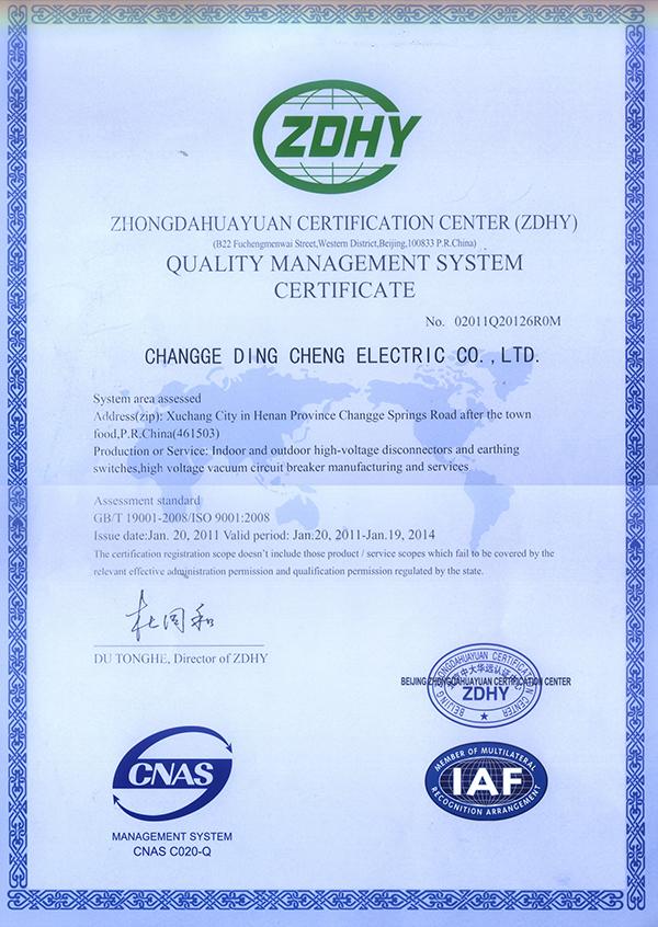 质量认证证书(正本)
