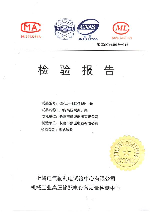 GN30隔离开关检验报告长葛市鼎诚电器有限公司